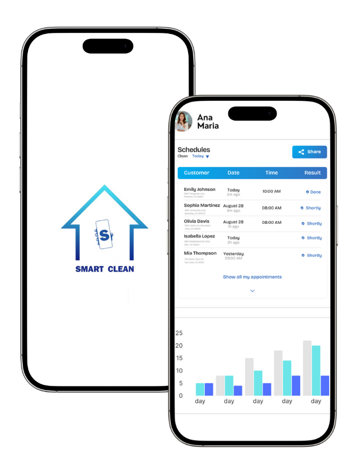 O Smart Clean é um aplicativo criado para facilitar a gestão de empresas e profissionais de limpeza. Ele centraliza clientes, funcionários, agenda de serviços, propostas comerciais e lista de preços em um só lugar.